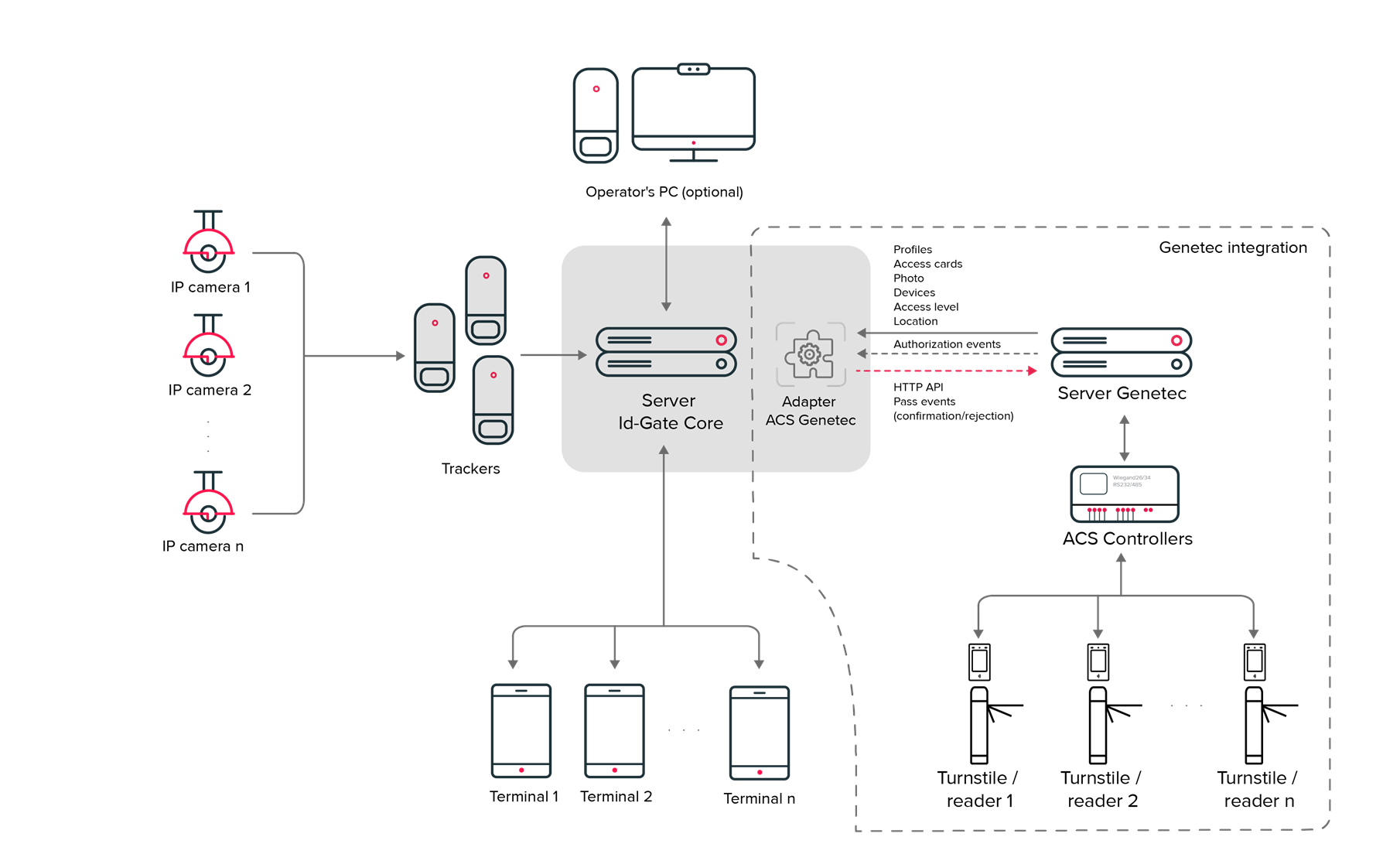 - Description: Ensure seamless data transfer between Id-Gate and Genetec Security Center, including commands, access events and object updates.
